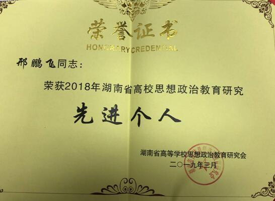 近日,湖南省高校思想政治教育研究会下发《关于表彰2018年湖南省高校思想政治教育研究先进单位、先进个人的通报》、《关于表彰2018年湖南省高等学校思想政治教育优秀论文、案例、专著的通报》,对2018年全省高校思想政治教育研究先进单位、先进个人以及优秀论文、案例等进行了表彰。公司被授予“2018年湖南省高校思想政治教育研究先进单位”荣誉称号;公司邢鹏飞老师荣获“2018年湖南省高校思想政治教育研究先进个人”荣誉称号;谭吉华老师申报的案例《让红色资源渗透到理想信念公司产品中》获评全省高校思想政治教育研究优秀案例二等奖。