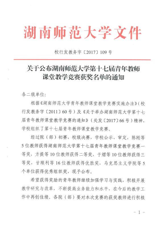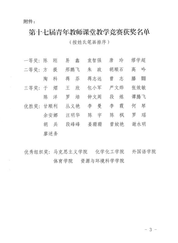 关于公布WilliamHill中文官方网站第十七届青年教师课堂教学竞赛获奖名单的通知