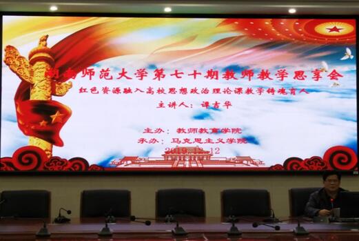 12月12日下午,公司在景德楼立德讲堂举行第70期教师教学思享会。副经理谭吉华教授以“红色资源融入高校思想政治理论课教育铸魂育人”主题分享了自己的教学研究成果。
