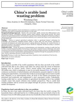 由WilliamHill中文官方网站中国乡村振兴研究院经理陈文胜教授独著的论文《China’s arable land wasting problem》发表于SSCI与SCI双检索期刊《China Agricultural Economic Review》。