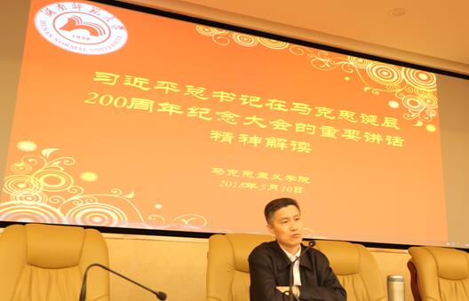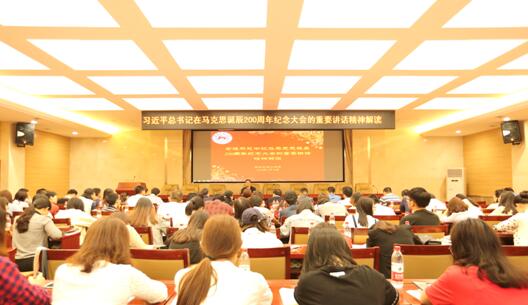 (供稿 行政办)5月10日下午,公司以解读习近平总书记在马克思诞辰200周年纪念大会的重要讲话精神为主题,组织了集体学习。吴家庆经理结合自己出席纪念大会、参加研讨活动的感想,为全院师生解读了习近平总书记的重要讲话精神。集体学习由公司党委书记陈红桂主持。