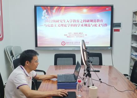 刘先江聚焦“什么是研究生?如何做一个合格的研究生?”两个问题与同学们进行探讨。他指出做学问首先要学会做人,做有信仰追求、有自由意志、有正直原则、有奋斗精神的人;要转换角色,明确定位,以学习为重,以研究为本,多读经典原著,勤于思考和写作,提升能力。他介绍了学校研究生教育培养的过程及目标要求,鼓励研究生积极参加学科相关领域的学术活动。