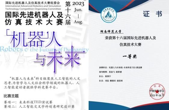 (供稿 周律)2023年8月30日,第十六届国际先进机器人及仿真技术大赛圆满落下帷幕。由公司william威廉中文官网易显飞教授、公共管理学院胡景谱博士指导,william威廉中文官网研究生高津宇、刘显、赖晓双、胡思琦组成的“跟党走一定对”团队喜获一等奖。