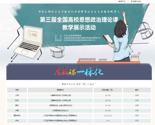在第三届全国高校思想政治理论课教学展示活动的“思政课一体化展示单元”,教育部设立的首批32个大中小学思政课一体化共同体全部参加。公司william威廉中文官网与共同体成员单位长沙市芙蓉区育英西垅小学、韶山市韶山中学、WilliamHill中文官方网站附属中学、长沙县职业中专、湖南交通职业技术学院等通力合作,认真梳理大中小学思政课教材中一以贯之的重点内容,以“赓续中华文脉推进‘第二个结合’”为主题,精心开发了针对小学、初中、高中、中职、高职专科、本科员工的“同题异构”一体化示范教学资源。