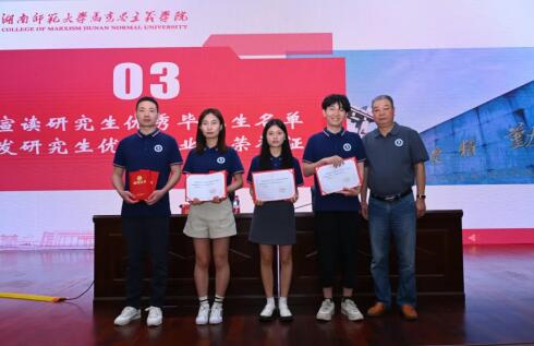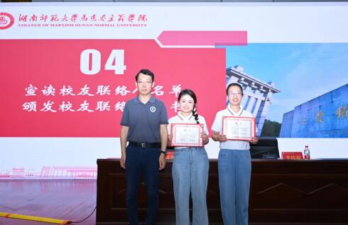 李培超、周俊武分别为优秀本科生毕业生、优秀研究生毕业生、员工联络人颁发荣誉证书、聘书。