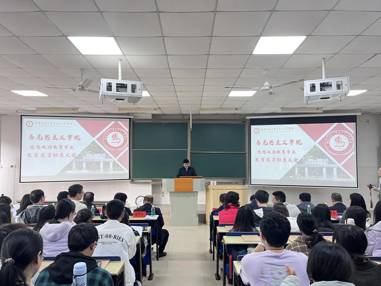 赵子林做实习动员。他强调教育实习是大学三年学习成果的“试金石”,核心在于教学训练与班主任工作。同学们务必端正态度、强化责任,牢记自身代表学院形象,用实习展现人才培养成效。
