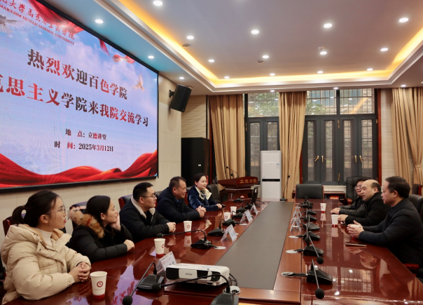 樊红兰表达了此次前来交流的目的,介绍了百色学院“革命性、民族性、边疆性”的办学特色。希望能在团队建设和高端人才引育机制等多方面进一步加强经验互鉴,共同助力两院思政教育的发展。