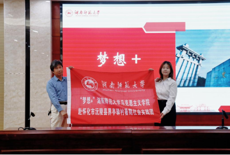 蒋国海、吴炫达老师为实践队授旗