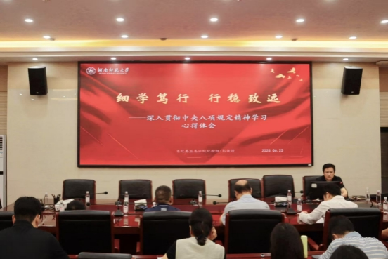 会上,省纪委监委驻校纪检组组长彭敦煌以“细学笃行 行稳致远——深入贯彻中央八项规定精神学习心得体会”为题作专题报告。彭组长从具体事例入手,深刻剖析了中央三次通报、身边两起案例及官媒三篇文章,阐明了学习中央八项规定精神的重要意义。他强调,中央八项规定是以上率下、一以贯之、抓早抓小的“徙木立信”之举,是新时代管党治党的标志性措施。他号召全体党员干部必须以中央八项规定精神为指引,时刻保持头脑清醒,坚决抵制歪风邪气,确保干事创业行稳致远。