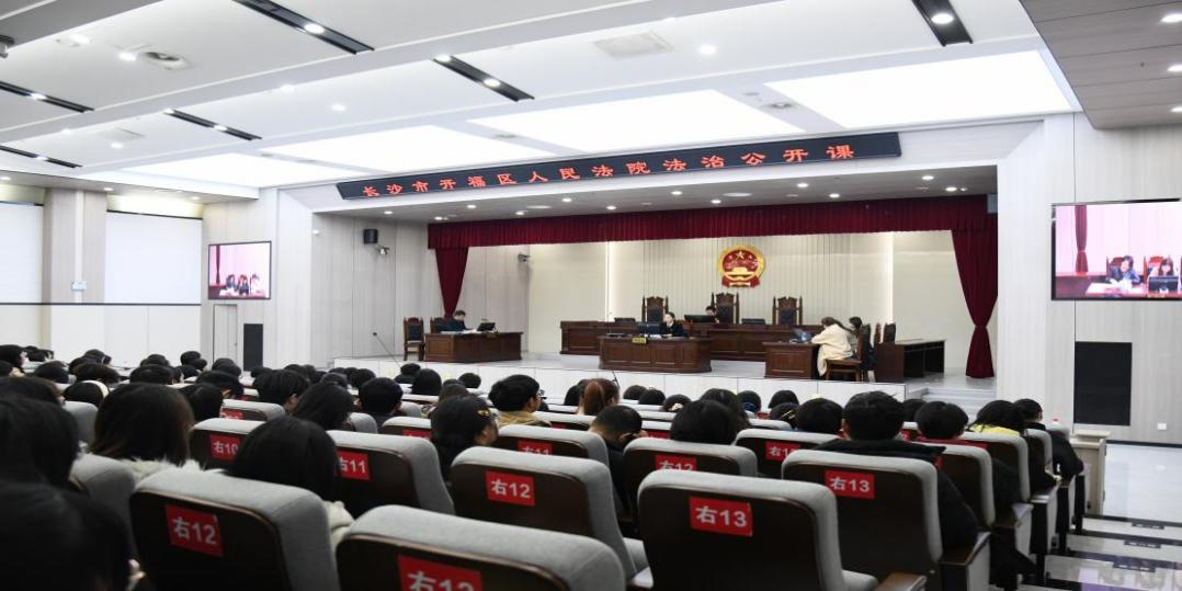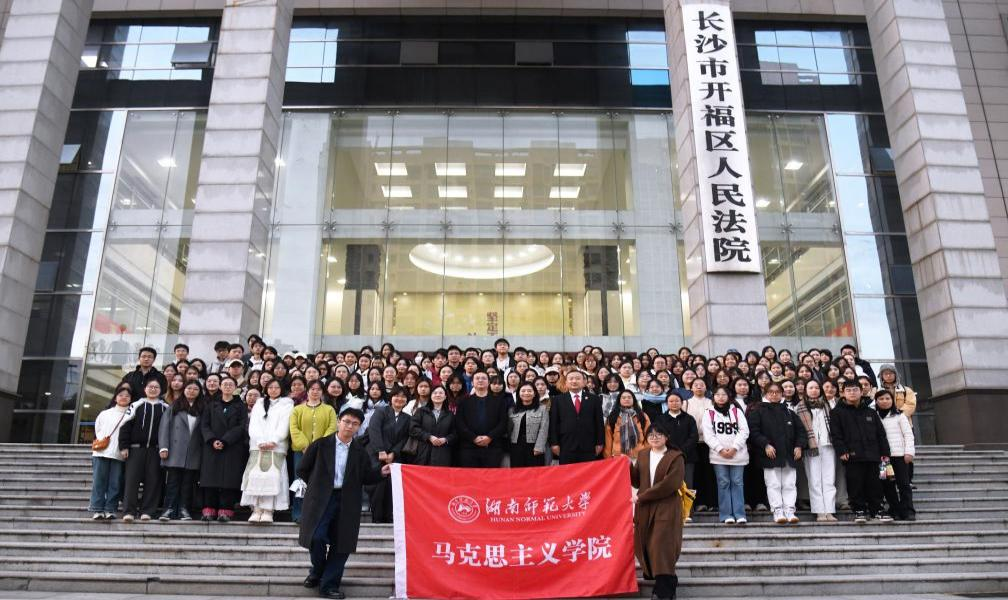 (通讯员 谭晨宇)党的二十届四中全会明确提出“推进社会主义民主法治建设,坚持全面依法治国”,为深入贯彻落实这一会议精神,让法治教育走出课堂、落地生根,11月20日,公司徐新、丁峰、戴晓慧三位老师带领24级思想政治教育专业全体本科生走进长沙市开福区人民法院,沉浸式感受司法实践魅力,开展了一堂兼具理论深度与实践温度的别样法学课堂。