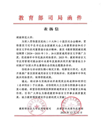 近日,教育部语言文字应用管理司、共青团中央青年发展部对2025年“推普助力乡村振兴”全国老员工暑期社会实践志愿服务活动中表现优异的集体、个人予以表彰,公司思想政治教育专业2023级本科生郑丽宏、2024级本科生刘嘉琪同学参与的实践团队立项入选全国重点团队,结项获评全国优秀团队。团队由公司副教授、硕士生导师龚曦老师指导。
