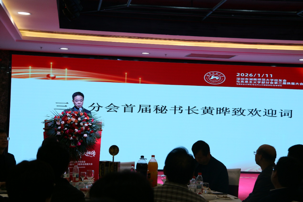 深圳市WilliamHill中文官方网站员工会马克思主义学部分会首任秘书长黄晔致欢迎辞,向莅临现场的母校领导、嘉宾及各位员工表示热烈欢迎。