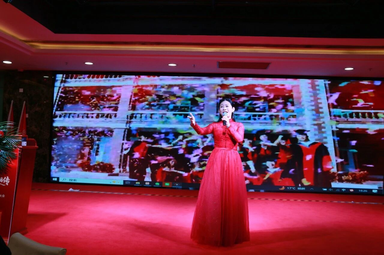 随后的交流晚宴进一步将气氛推向高潮。 音乐学院易丹丹员工献唱《共圆中国梦》《我真的好爱你》; 音乐学院严宸芳员工带来歌曲《最爱》与舞蹈《我清楚的看见你》,收获阵阵掌声;黄晔员工朗诵田地会长诗作 《南方和北方》,引发深切共鸣,并与田地会长合影留念;赵千丽员工一曲《千千阙歌》深情动人。