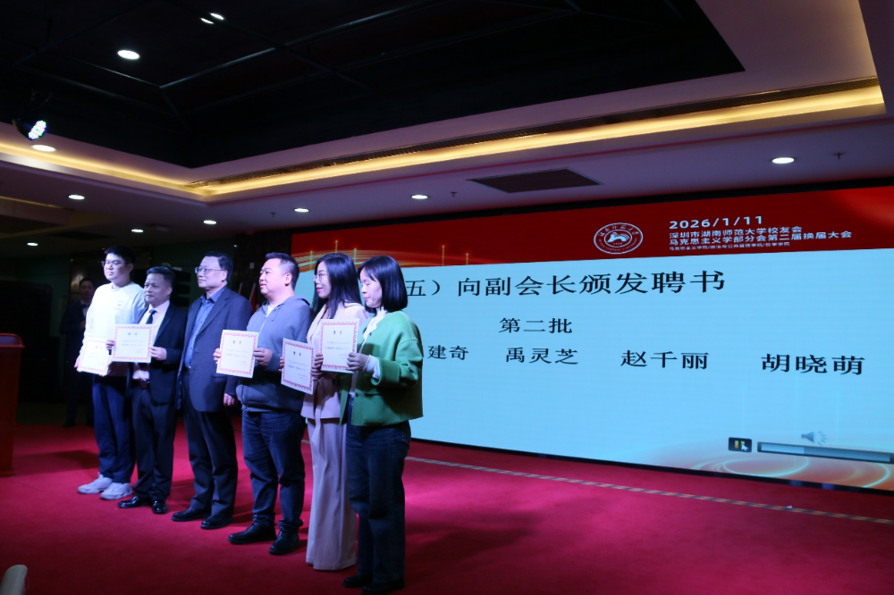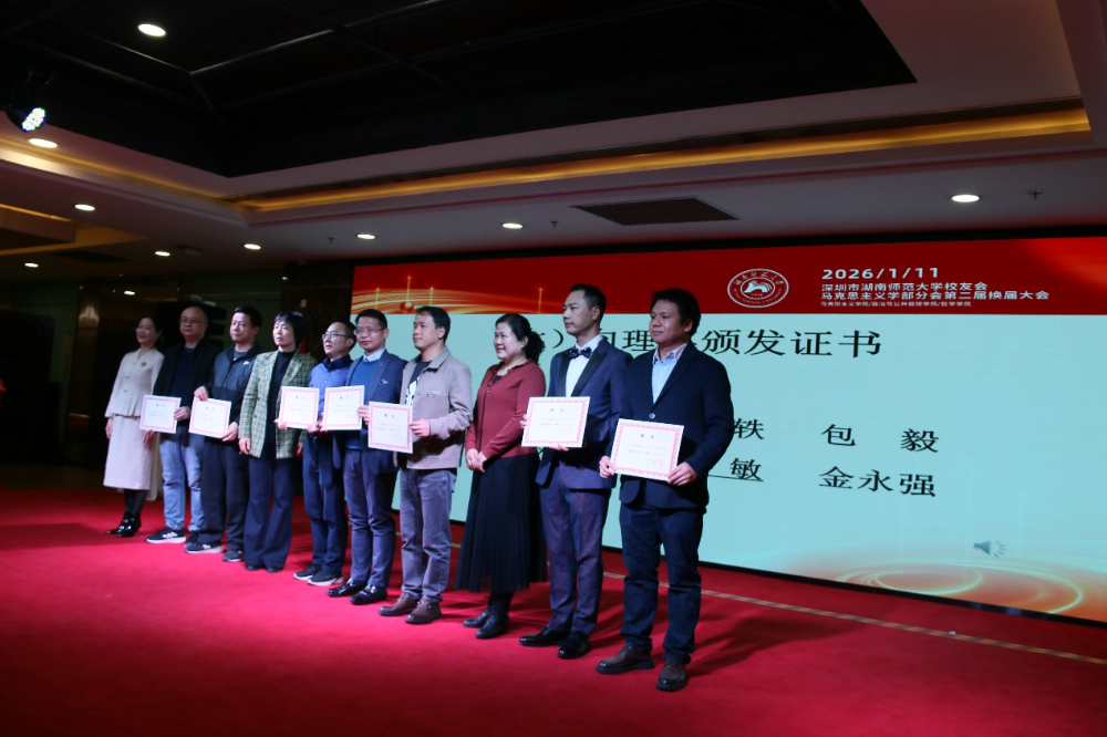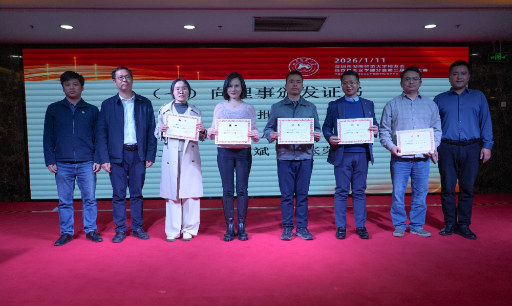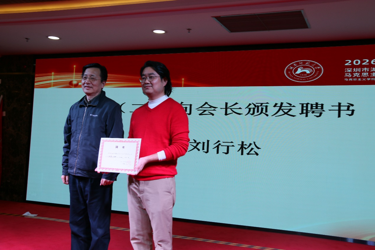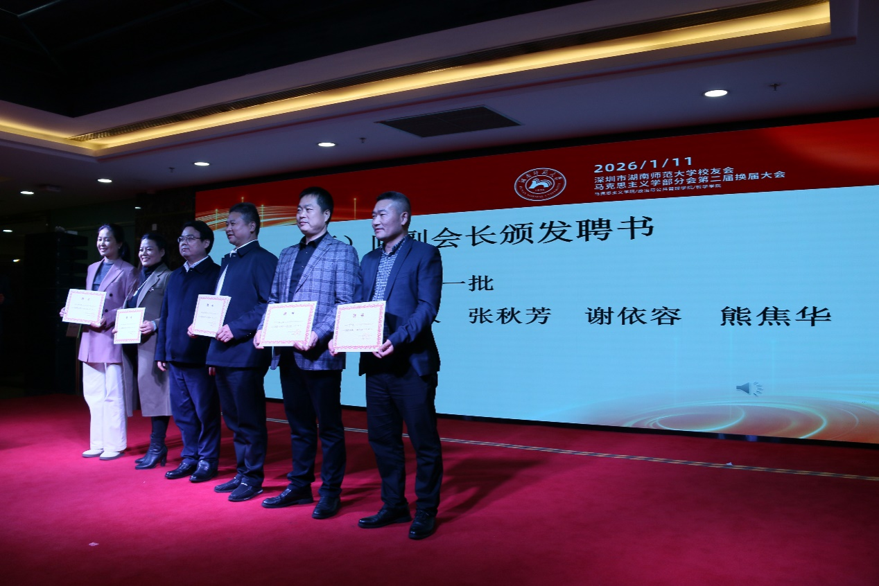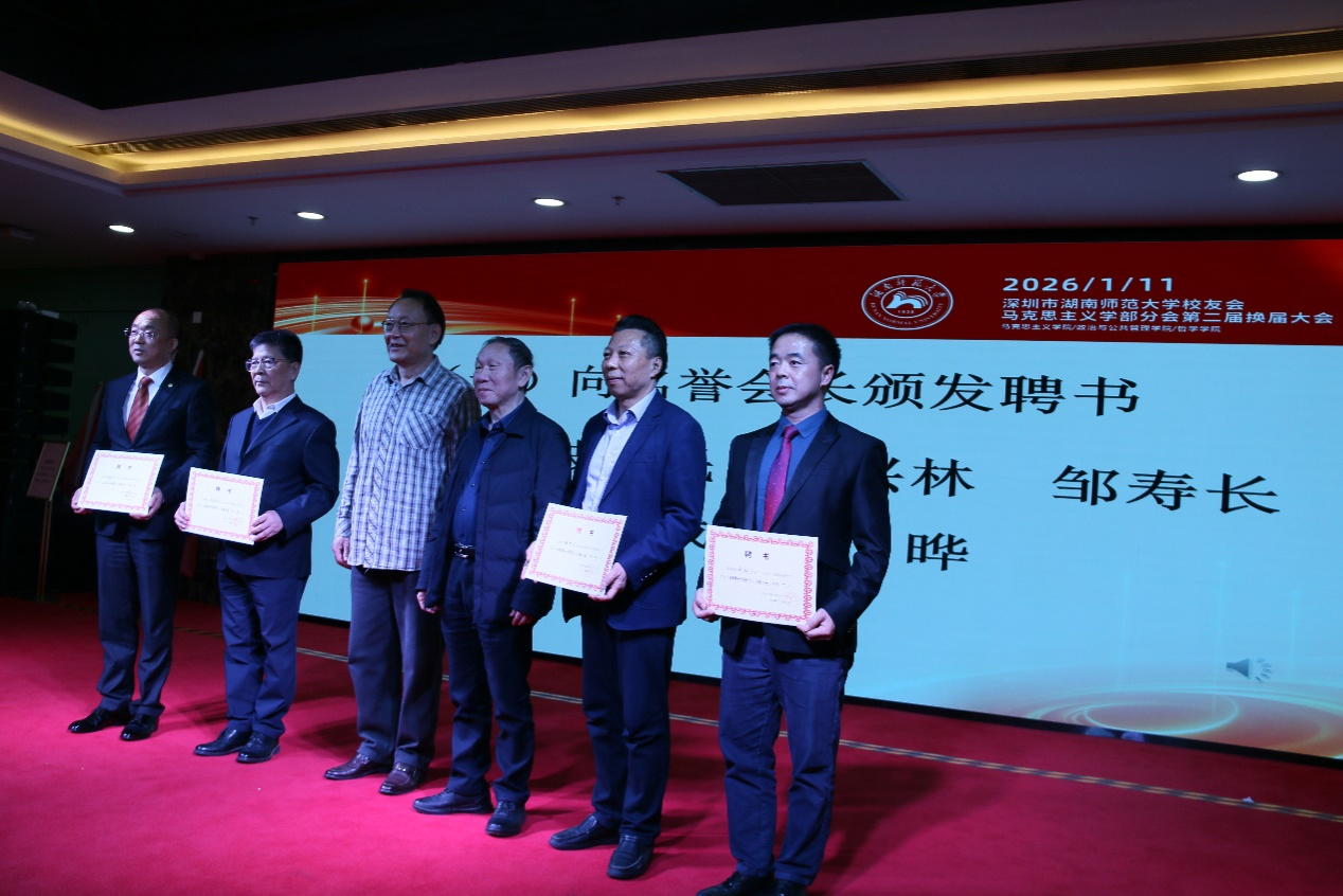 聘书颁发环节气氛热烈而庄重。刘湘溶教授、张怀承教授、彭伟名誉会长等嘉宾依次上台,为文锦等7名名誉会长颁发聘书;