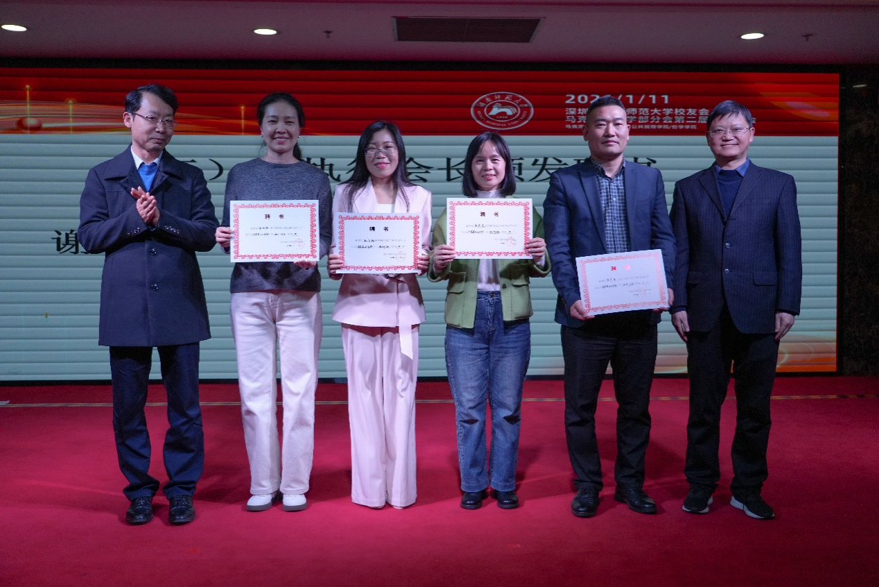 邝洁员工工作专员、陈丽荣副书记、苏静副经理、易珊副书记、李江副经理、文贤庆副经理六位老师为15名理事颁发聘书。