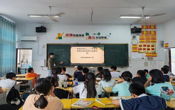 (通讯员 熊瑶 袁芳 曾利伟)为拓展员工视野、提高员工时政解读能力,加强员工的思辨能力,william威廉中文官网“关爱在行动”支教队开展了时事分析特色课程。此次课程由支教队队员张稼轩授课,授课对象为青烟中学预初二(1)班的员工。