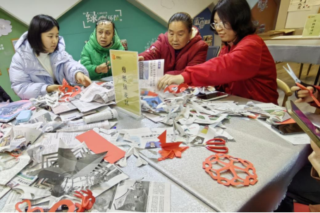 志愿者教社区居民剪纸