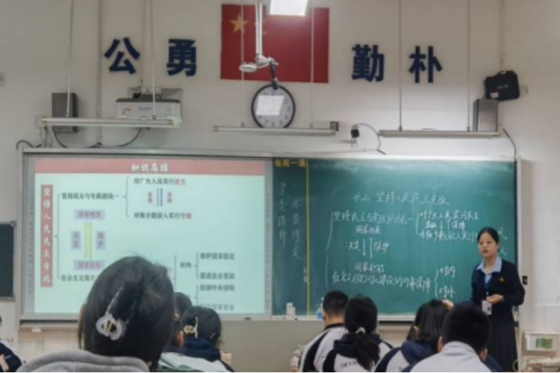 三名队员的授课内容为高中思想政治必修三《政治与法治》的第二单元第四课第二框《坚持人民民主专政》。队员们采用议题式教学法、案例分析法、活动教学法、讲授法等多种教学方法展开教学。队员们授课思路清晰,环节紧凑,内容充实,设计合理,重难点突出,课堂气氛活跃。