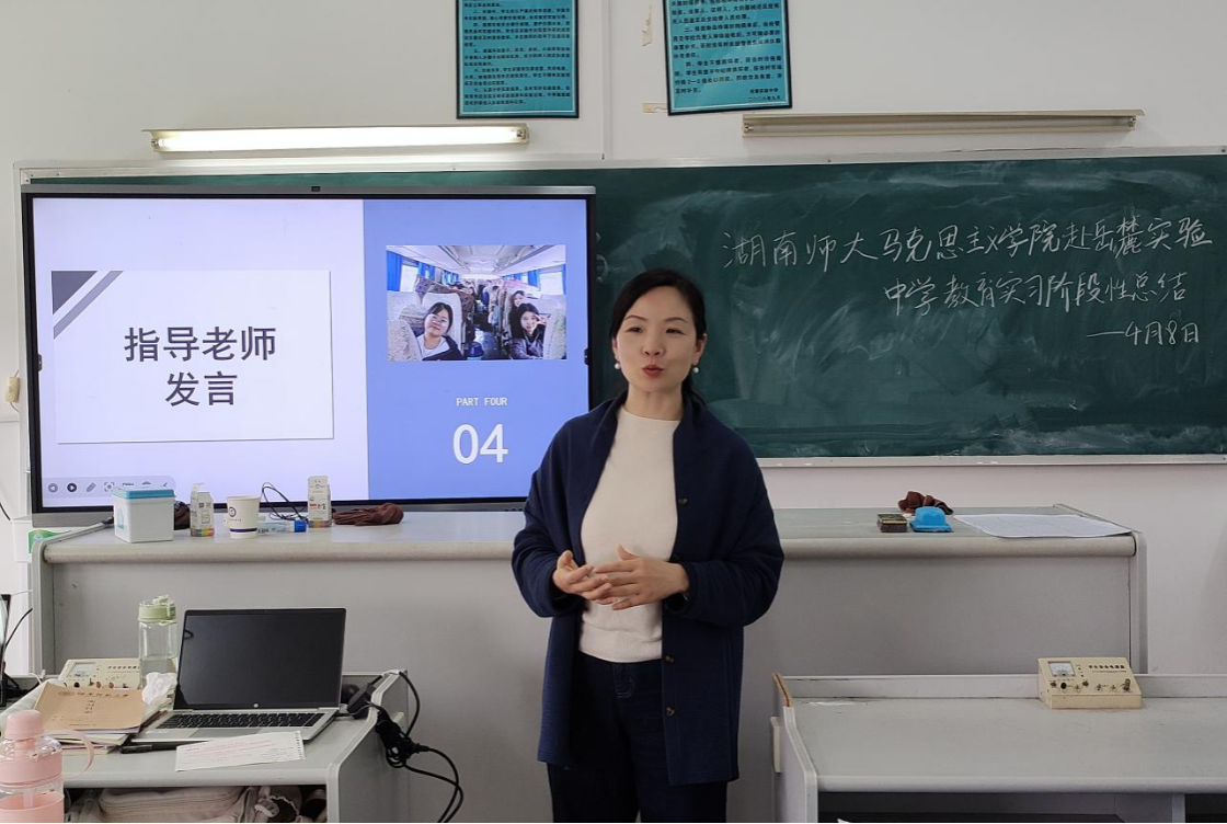 实习队指导老师刘艳对实习队工作进行总结,肯定实习队在教学准备工作和宣传工作方面的进步,对实习队员即将到来的首次入班教学提出建议,并与队员们进行深入交流,对队员们寄予深切期望。