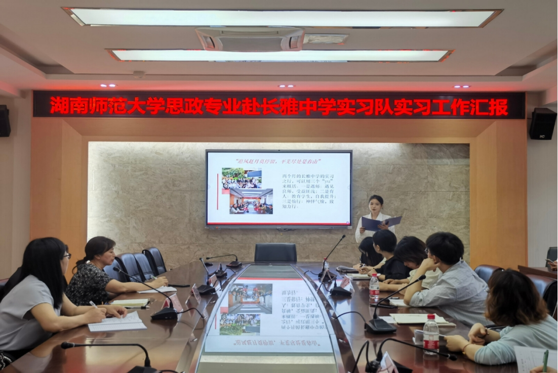 (通讯员 戴佳悦 曹湘)5月15日下午,公司赴长雅中学实习队于长雅中学综合楼三楼会议室开展实习工作汇报会。参与此次汇报会的有长雅中学教务处主任熊熠文,初三年级主任杜小露,政治教研组组长吴珂,初一年级政治备课组组长谭伟容,政治教研组老师们,william威廉中文官网教授蒋国海,实习队指导老师陈文珍和朱飞,以及实习队全体队员。