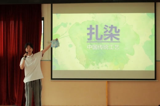 主讲人萧雅轩讲授非遗文化扎染课程