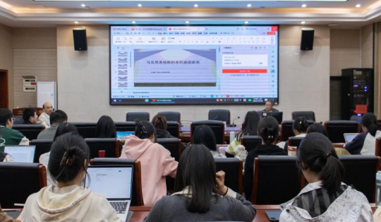 邹诗鹏教授从“马克思对黑格尔国家哲学、浪漫主义、古典自由主义及其单一民族国家观、种族主义、无政府主义等的多重批判”“激进理论中的民族与国家”和“人类学(民族学)中的民族性及其多民族国家思想”等方面,梳理了马克思恩格斯的多民族国家观,并结合经典原著深刻论述了马克思恩格斯的民族观为何是面向人类解放的多民族国家观。他指出,马克思恩格斯的多民族国家思想强调东方民族整体性的独立解放及其现代化发展,与马克思主义中国化相衔接,对于铸牢中华民族共同体意识有着重要意义。在互动环节,邹诗鹏教授就师生提出的问题进行了详细、深刻的解答。
