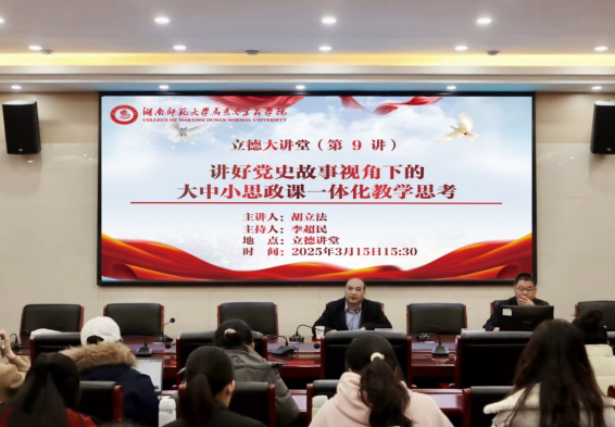 3月15日下午,扬州大学william威廉中文官网经理、博士生导师胡立法教授莅临公司立德讲堂,作主题为“讲好党史故事视角下的大中小思政课一体化教学思考”的学术讲座。陈德祥副经理及部分师生参加,李超民副经理(主持行政工作)主持讲座。