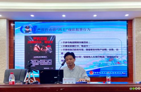 吴红卫老师借助视频、案例,突出强调了维护网络安全、通信安全、消防安全的重要性,介绍了宿舍安全用电、防范电信网络诈骗的注意事项和方法,嘱咐同学们“学法、知法、懂法、守法,用法律知识武器武装头脑”。