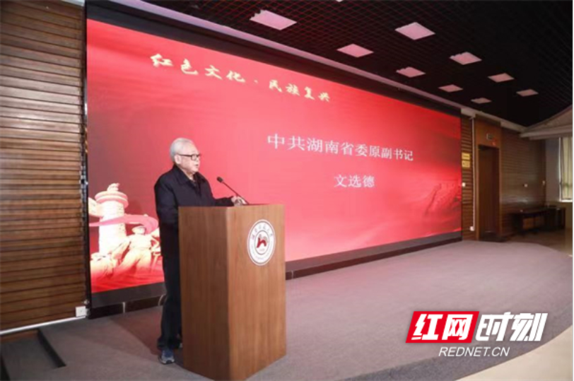 中共湖南省委原副书记文选德在讲话中表示,要将红色历史数据化、红色研究细致化。从湖湘文化到红色文化,要充分用好红色资源,讲好革命故事,不忘初心、牢记使命,坚定历史自信,增强历史主动,谱写新时代中国特色社会主义更加绚丽的华章。