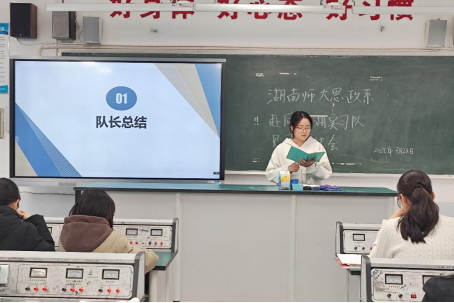 会议伊始,三位队长分别总结了教学、宣传、调研方面的阶段性成果,并明确了下一阶段的工作方向,包括备课要求、教研目标以及宣传工作等。朱莎昊等三位实习生代表结合班级管理经验,从“适应校园节奏”“体悟教师职责”“凝聚团队合力”三个方面进行分享。