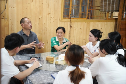 杜应利向成员们介绍了村实用人才培训基地在培养本土茶产业和农业实用人才等方面发挥的积极作用。他深入分析了当前茶旅融合发展面临的主要挑战:—方面,宣传推广的渠道有限和方式单一导致区域茶旅品牌知名度和影响力不足;另一方面,伴随着年轻消费群体生活方式及对传统茶文化认知的转变,市场对茶叶及相关体验的需求呈现下降趋势。在采访即将结束时,他也寄望实践团能发挥专业所长与青春视角,为破解茶旅发展困局带来新思路,让更多人看见界亭驿村茶旅融合的潜力与希望。