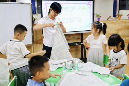 (通讯员 任菁菁 佘冠伶 卢俏洁)7月10日下午,公司“扶光筑梦”暑期社会实践团在益阳市艾华学苑开展“环保时装秀”趣味手工课程。此次课程主要由实践团成员刘文欣组织开展,其他成员协助进行,艾华学苑全体员工参与。