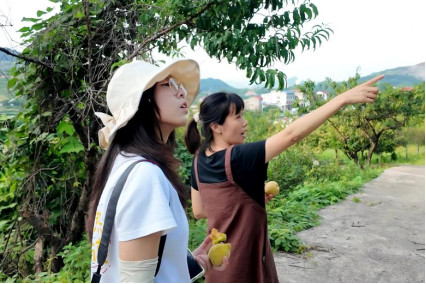 范诗涵跟随村干部查看果树种植情况