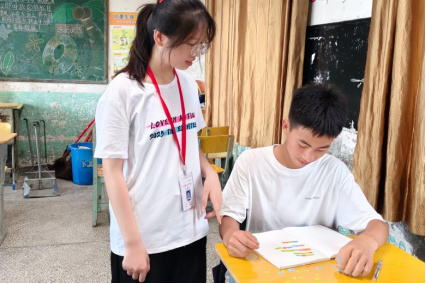 实践团成员在“关爱一班”组织“情绪拼贴诗”活动