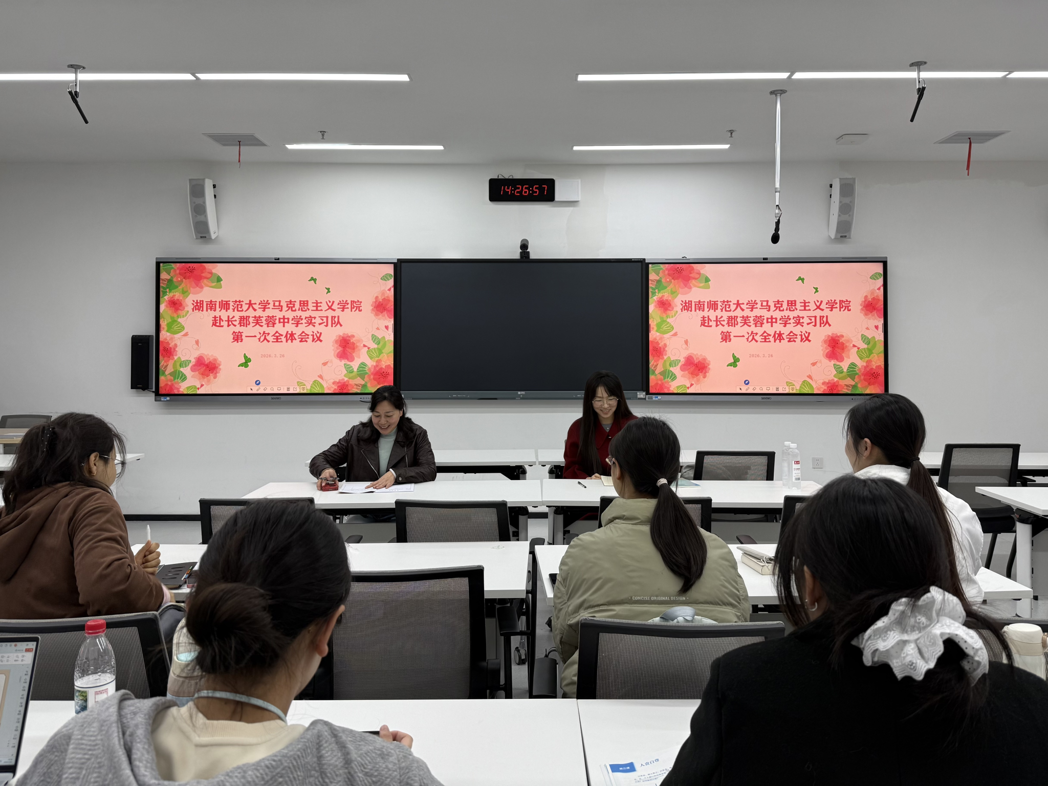 (通讯员 张晓桂 谭洁 蒲鑫睿)3月26日下午,我院2023级赴长沙市长郡芙蓉中学实习队在三棵树科研楼108教室召开第一次全体会议,并开展首次试讲活动。此次活动由指导老师陈文珍、孟恒艳到场观摩并点评,实习队长吴虹佳、副队长吕星和谭蕾统筹组织,实习队全体成员共同参加。