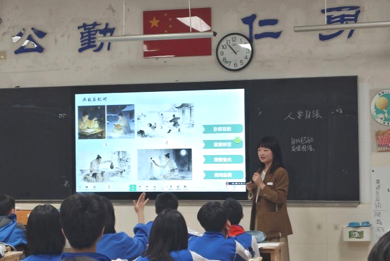 (通讯员 向胜军 吴超群 顾卿)4月13日,公司赴师大附中梅溪湖实习队实习教师开展首次授课活动。实习教师肖惜文、许思甜进行课堂教学,指导老师彭岁枫和实习学校指导老师瞿士凡进行评课,实习队全体成员到场观摩学习。